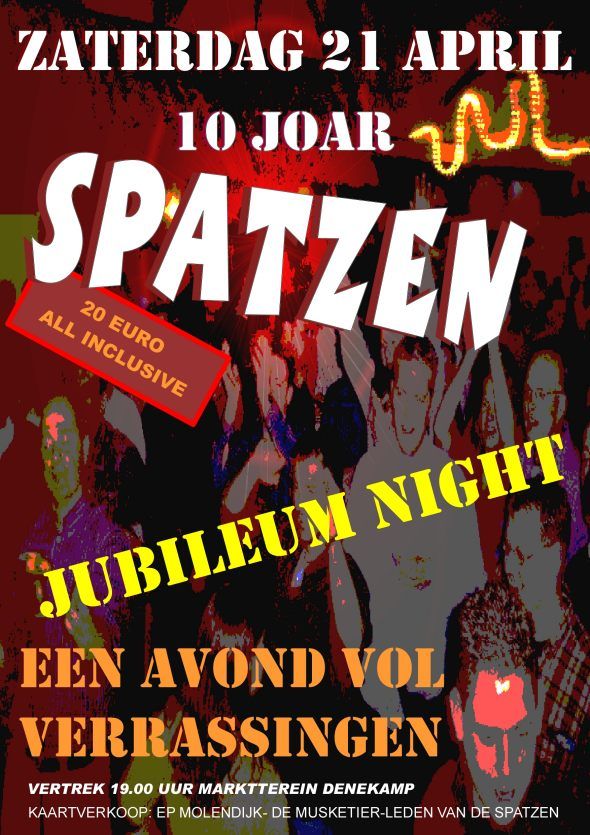 Het zit er weer op. The Night of the Spatz 2007. Een jubileumnight i.v.m. ons 10-jarig bestaan. En wat voor een Night. Met 300 mannen en vrouwen in de bussen naar zaal Richterink in Veldhausen. Een geweldige sfeer, optredens van John Otten, de Spatzen en Bettina Stark. Het bier vloeide rijkelijk, er werd gelachen, gezongen maar vooral gefeest. Hieronder alvast een paar foto's, spoedig zullen er nog meer volgen. Bij deze bedanken we alvast iedereen die geweest is, het was een SUPERNIGHT. De volgende is pas over 5 jaar, of zullen we er eentje over 2,5 jaar houden??