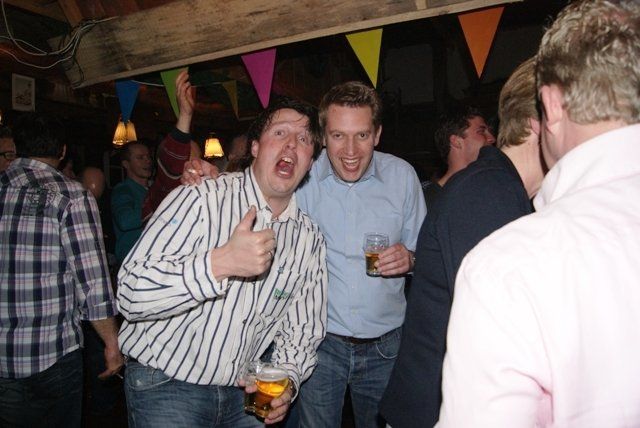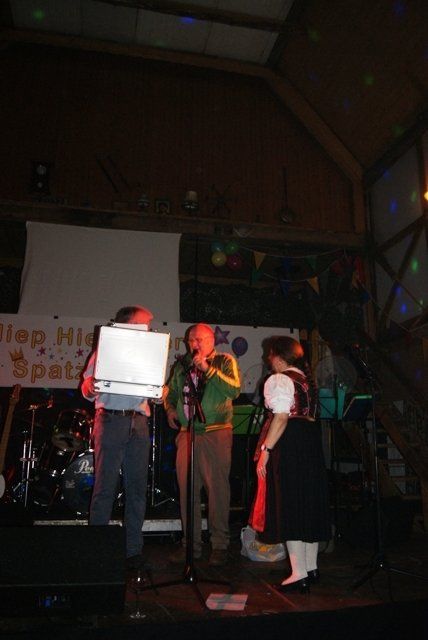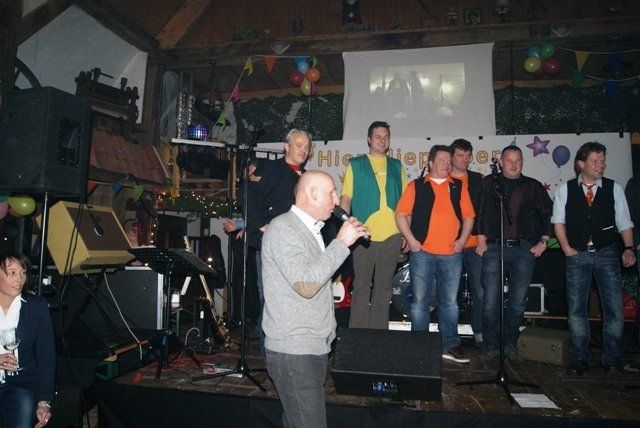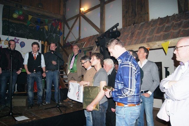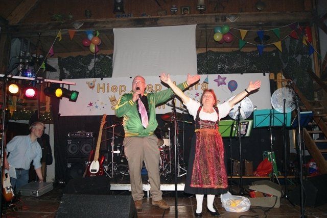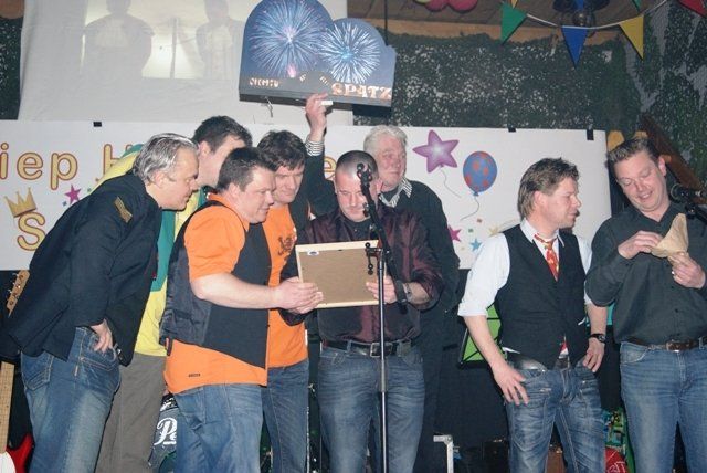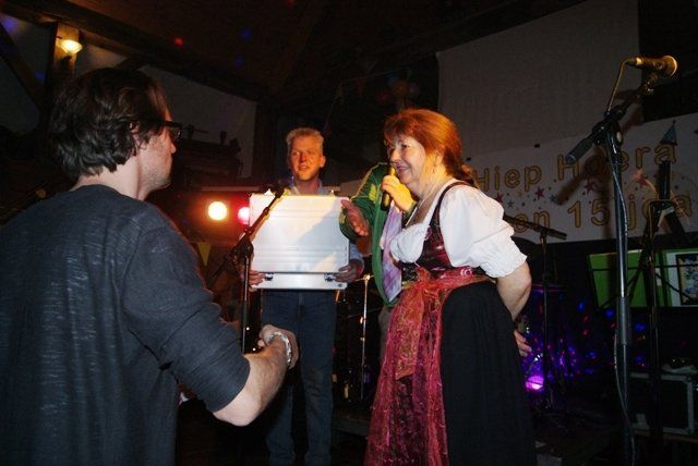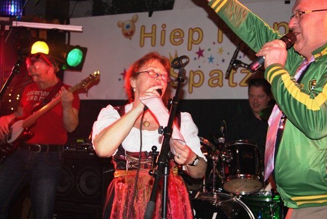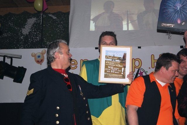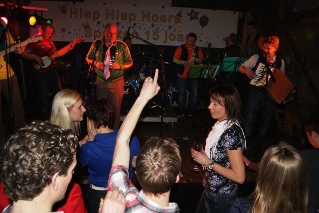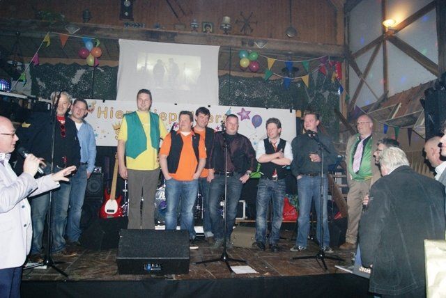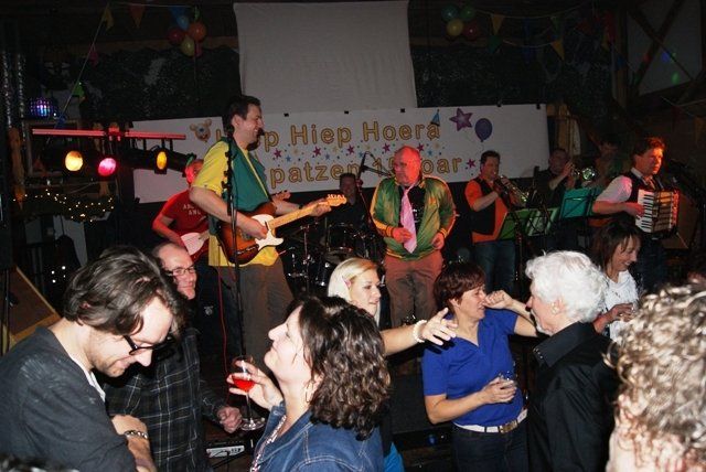 Onze jubileumnight zit er weer op, we kunnen terugkijken op een schitterende avond. De avond verliep zoals we zelf van te voren hoopten, dat ie zou verlopen. Alles liep perfect, de Scouting met de koffie en krentenwegge, het busvervoer, het barpersoneel van het kindercarnaval en alpeduzes hadden alles prima voor elkaar, de vrienden die ons een prachtig cadeau aanboden, Jopie Vogelvang die qua fitheid, op haar leeftijd, niet onderdoet voor Tina Turner, bracht een geweldig optreden, onze eigen optredens liepen als een trein en natuurlijk de vele meegereisde fans die net als wij een schitterende avond hebben beleeft. Hieronder de foto's met soms een begeleidende tekst.