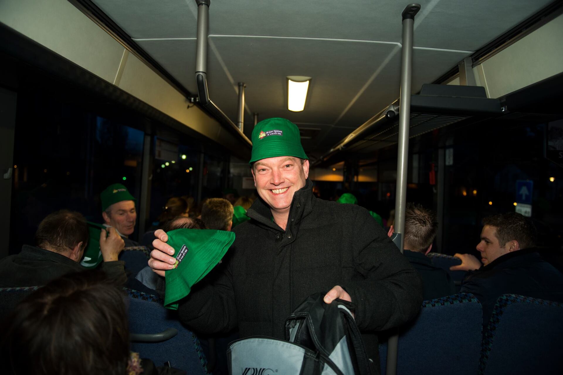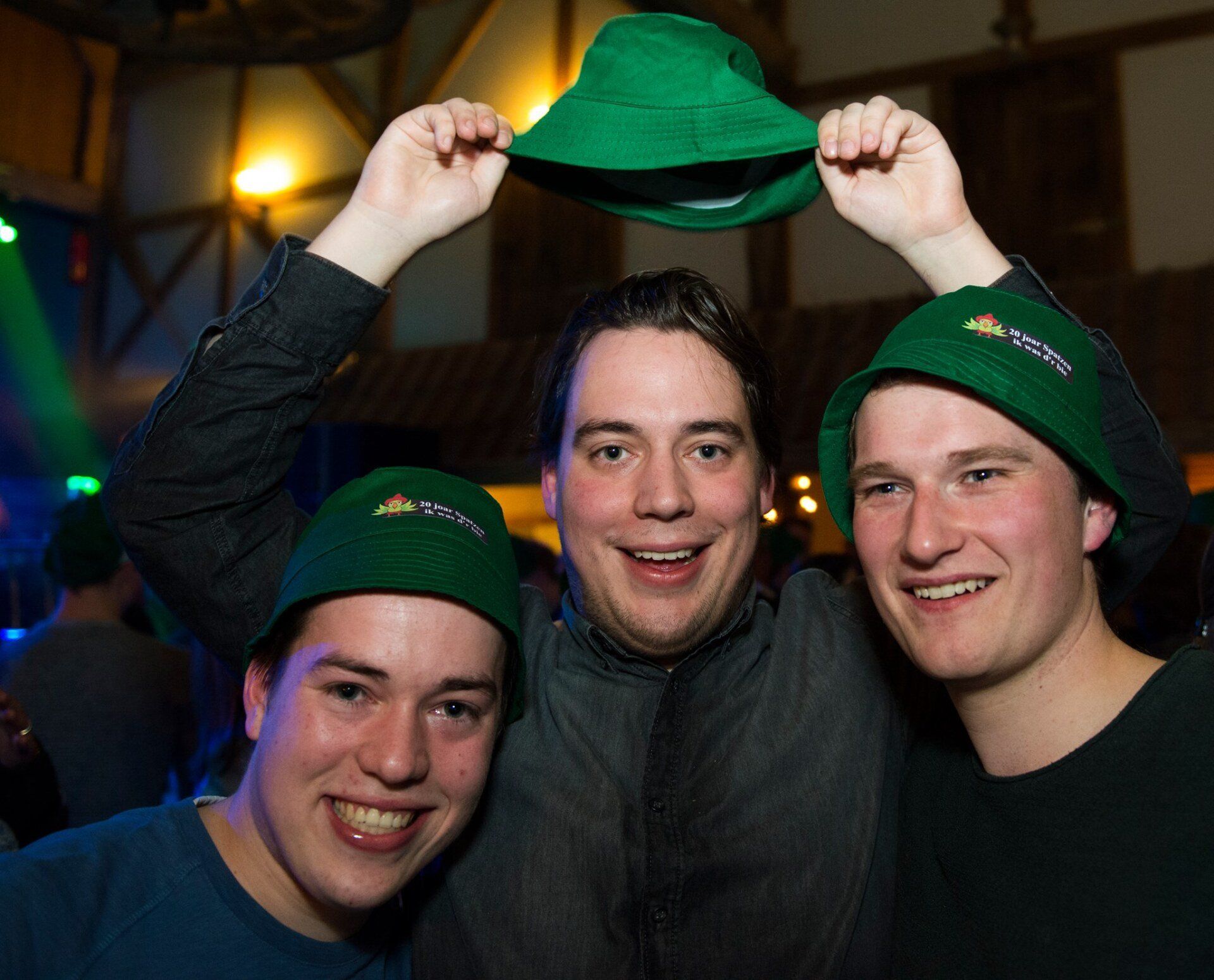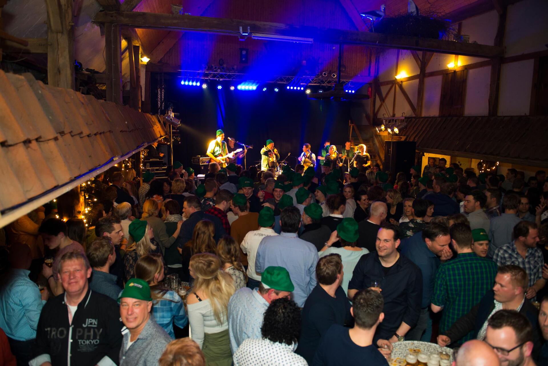 Dit was dan alweer de 4de NOTS. Altijd afwachten hoe de avond zal verlopen. De drie honderd kaarten waren in no-time uitverkocht. Om 18.30 uur stroomde het al lekker vol bij Mensink Schoen. De scoutinggroep uit Denekamp verzorgde de koffie met botterkook van Kienhoes. (Henkie nog bedankt voor de matsprijs, scouting ook bedankt, we maken het nog goed met jullie) Consumptiekaarten werden al goed verkocht. De opbrengst daarvan komt ten goede aan het kindercarnaval en het Doctor Eekmanhof, zij sparen voor een duofiets. Als tegenprestatie fungeerden vrijwilligers van kindercarnaval en Eekmanhof als barpersoneel. Tegen 19.00 uur kwamen de bussen van Richters voorrijden, fans d'r in, wij hoedjes uitdelen en rap richting de Pruus. Er moest een klein eindje gewandeld worden alvorens Diele Rigterink bereikt werd. Dit werd gelukkig niet als probleem ervaren. Bij binnenkomst stonden de danseressen van het Greungala een welkomstdrankje uit te delen. DJ Hebetijger draaide als vanouds en tegen 20.30 trapten we af voor onze eerste zet. Voornamelijk eigen nummers. Prachtig om te horen dat ze de teksten uit volle borst meezingen. Onze zangeressen hadden een leuke spatzenquiz in elkaar gezet welke werd gewonnen door oud-spatz Rob Naats. Daarna betrat Jopie Vogelvang het podium om de zaal ouderwets op de kop te zetten. Als wij op zo'n leeftijd nog net zo springen als haar, dan tekenen we er direct voor.
