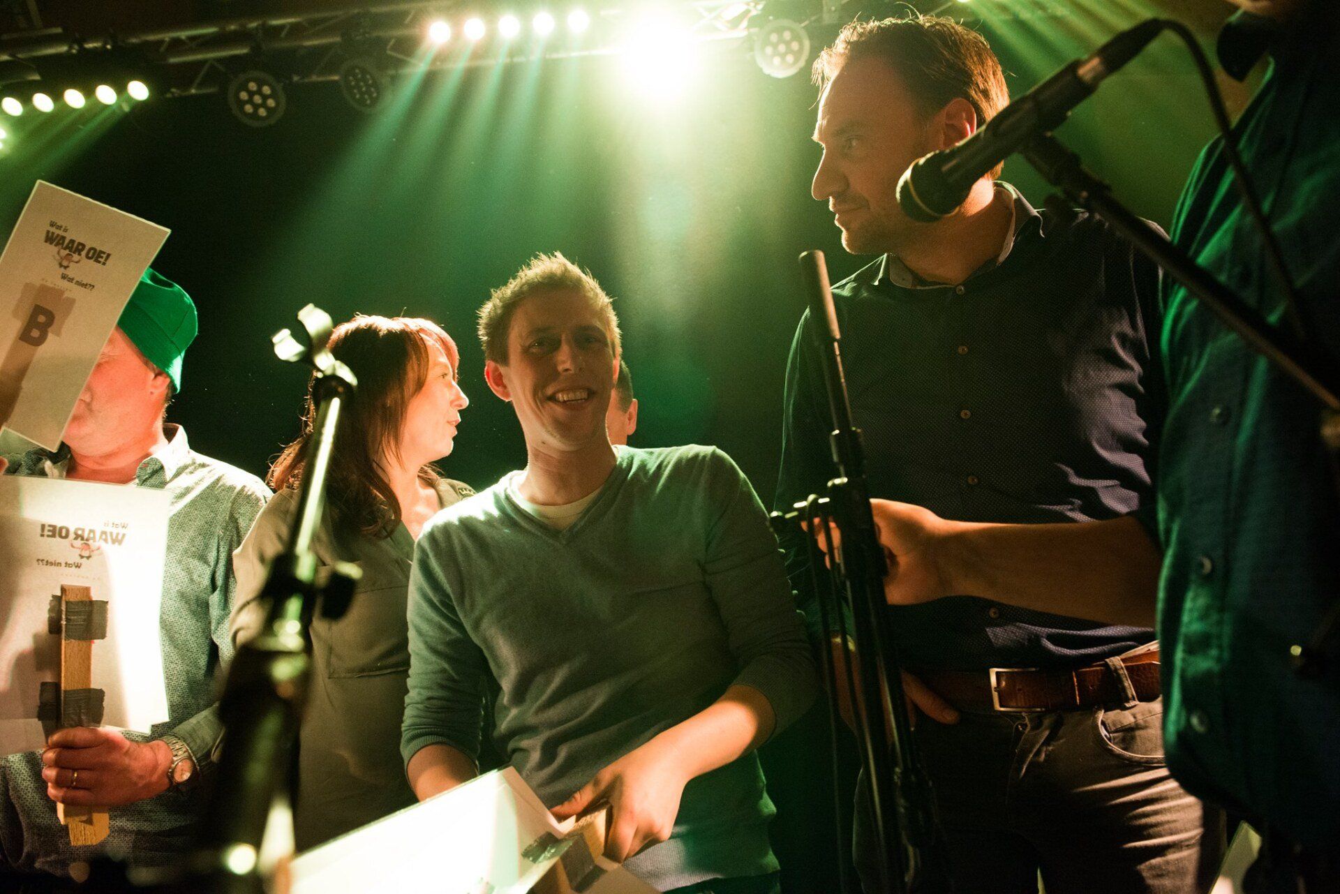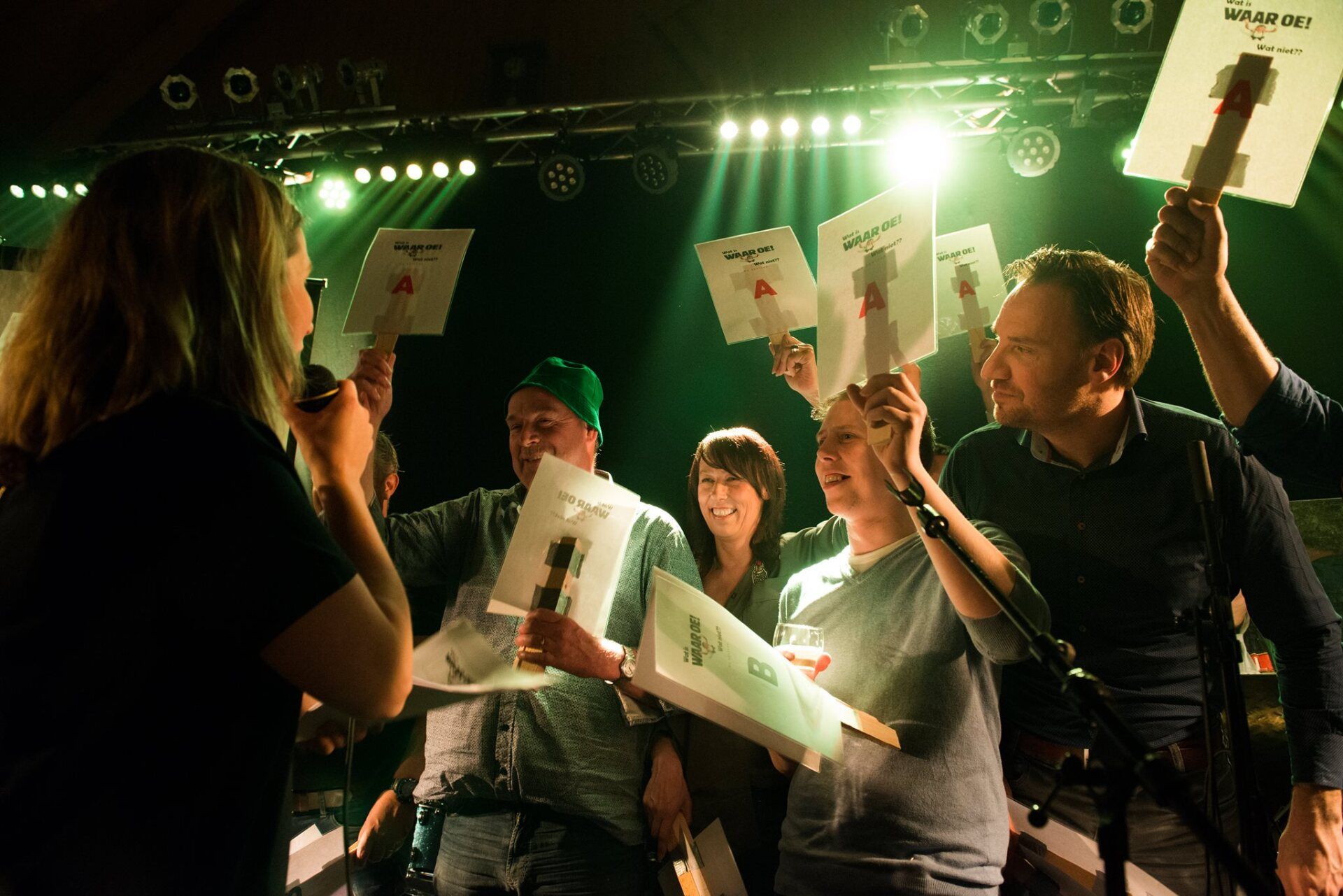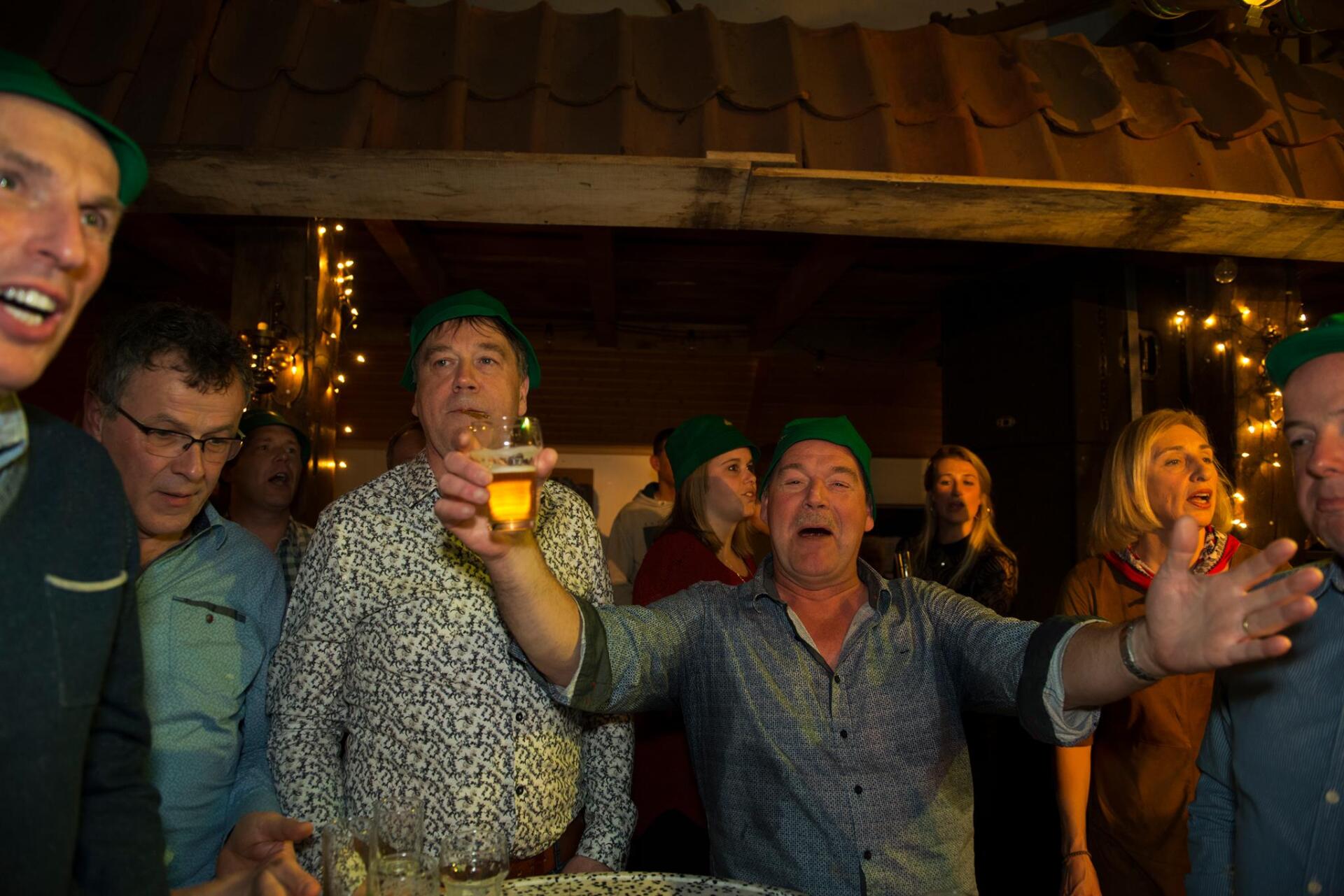 Dit was dan alweer de 4de NOTS. Altijd afwachten hoe de avond zal verlopen. De drie honderd kaarten waren in no-time uitverkocht. Om 18.30 uur stroomde het al lekker vol bij Mensink Schoen. De scoutinggroep uit Denekamp verzorgde de koffie met botterkook van Kienhoes. (Henkie nog bedankt voor de matsprijs, scouting ook bedankt, we maken het nog goed met jullie) Consumptiekaarten werden al goed verkocht. De opbrengst daarvan komt ten goede aan het kindercarnaval en het Doctor Eekmanhof, zij sparen voor een duofiets. Als tegenprestatie fungeerden vrijwilligers van kindercarnaval en Eekmanhof als barpersoneel. Tegen 19.00 uur kwamen de bussen van Richters voorrijden, fans d'r in, wij hoedjes uitdelen en rap richting de Pruus. Er moest een klein eindje gewandeld worden alvorens Diele Rigterink bereikt werd. Dit werd gelukkig niet als probleem ervaren. Bij binnenkomst stonden de danseressen van het Greungala een welkomstdrankje uit te delen. DJ Hebetijger draaide als vanouds en tegen 20.30 trapten we af voor onze eerste zet. Voornamelijk eigen nummers. Prachtig om te horen dat ze de teksten uit volle borst meezingen. Onze zangeressen hadden een leuke spatzenquiz in elkaar gezet welke werd gewonnen door oud-spatz Rob Naats. Daarna betrat Jopie Vogelvang het podium om de zaal ouderwets op de kop te zetten. Als wij op zo'n leeftijd nog net zo springen als haar, dan tekenen we er direct voor.